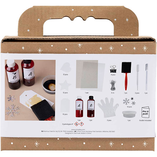 Mini Craft Kit Cyanotype, Gift labels, blue, silver