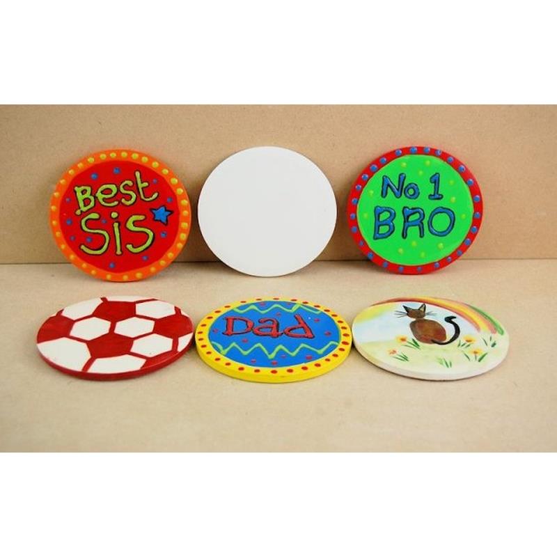 Bisque round plain coaster in earthenware ceramic. Use with CLT1317 CORK backing. Ideal for Mothers day Fathers day Christmas Easter Valentines day or New Born Baby gift. A paint your own pottery blank or plaster shape. Paint item with poster paints acrylics Decopatch or decoupage and finish/seal with a coat of craft varnish. Alternatively to make the item foods-safe and more durable paint or decorate shape with underglaze or glaze and fire in a kiln. Great for parties (craft party birthday party hen party) christenings weddings corporate team building events home d cor interior design community and craft projects fundraising schemes schools etc. Dimensions: 0.5cm (H) x 8.5cm (Dia) Sold individually Use our CLTILE SETTERS (pair) to fire your coasters as shown in the image above. CLT1317 CLT1317 MPN T1317