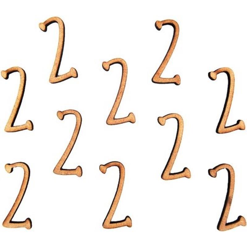 MDF Number 2 Plain, unpainted unfinished (ready-to-decorate) small flat wooden number. Paint, embellish, stain or Decopatch. Paintable craft blank. Also supplied as part of a complete alphabet/number set CLW0052. Dimensions: 28 x 4mm Sold in a pack of 10 465.650.028 CLW0081 CLW0081 MPN 465.650.028