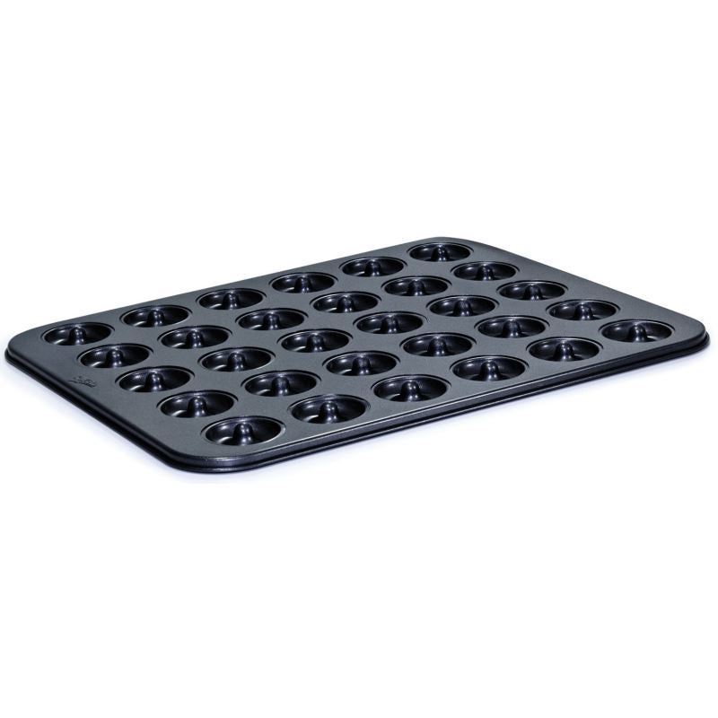 Cutie Donuts Pan Sometimes you just cant choose between chocolate sprinkles and glazed. When you bake bite-sized mini donuts with the Mrs. Fields Cutie Pie Mini Donut Pan, you can have both without guilt! The pan makes 30 mini donuts, which are perfect when you just need a tiny treat. Dishwasher Safe: Yes Material: Carbon Steel with Non-Stick Coating Size: 15.9"ÔøΩ x 12.6"ÔøΩ x 0.6"ÔøΩ 145 LO145 LO145 MPN 145