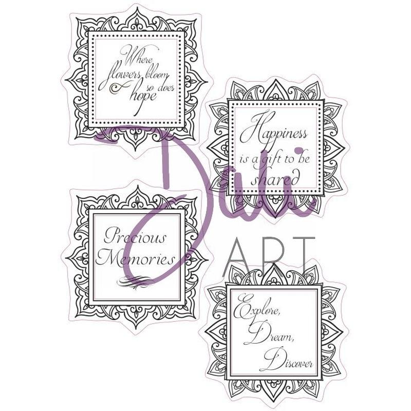 DaliART Square Frame Sentiments Stamp inspired by henna designs. Being tear resistant, the stamp is tough and can be stretched and will relax back to their original shape. It has an excellent back adhesion, allowing repositioning many times on an acrylic block. The Square Frame Sentiments Stamp will work excellently with all water-based or solvent based inks. You will require an acrylic block with this stamp, which is not included. Naturally sticky back (Storage on plastic keeps the stamp back sticky) Compatible with all water-based and solvent inks (please note solvent inks will stain stamps) Do not store in sunlight, as prolonged exposure to UV will weaken the stamp Acid free and non toxic DLCSA6006 DLCSA6006 MPN
