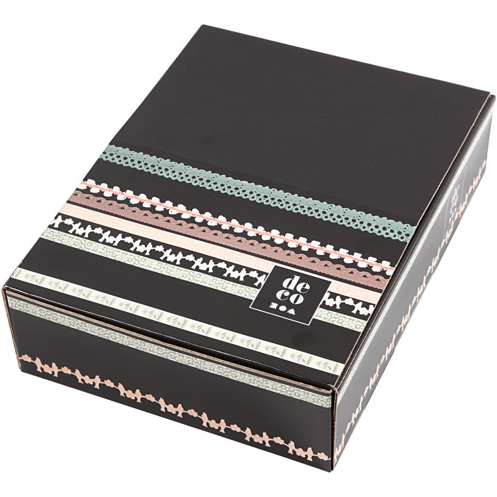 Stock up on a wide variety of trims with this Decorative Ribbon Assortment Pack. Presented in a convenient display box, the collection includes 48 rolls of ribbon in assorted colours and designs. Each ribbon measures between 10–15 mm wide and comes in 2 m lengths, offering plenty of options for creative projects.