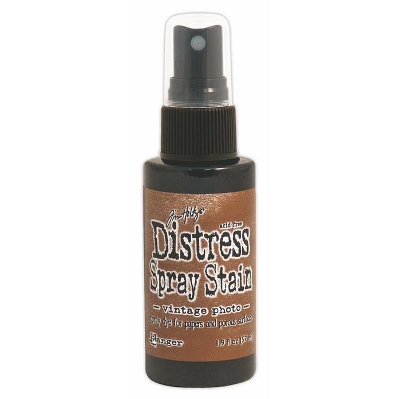 Tim Holtz Distress - Sprays - Spray Stains Vintage Photo Distress Spray Stains. The 1.9 fl. oz Distress Spray Stains feature a quality mist sprayer. Use for quick and easy ink coverage on porous surfaces. Spray through stencils, layer colors, spritz with water and watch the color mix & blend. TIM HOLTZ DISTRESS SPRAY STAINS 1.9 fl. oz bottles with fine mist sprayer 28 colors, including white and 3 metallics in Distress color palette Water-based dye inks for paper & porous surfaces Available in a display with 5 each of all 28 colors 2pk Sprayers available for Spray Stains & Dylusions Ink Sprays. TSS42594 TSS42594 TSS42594 MPN TSS42594