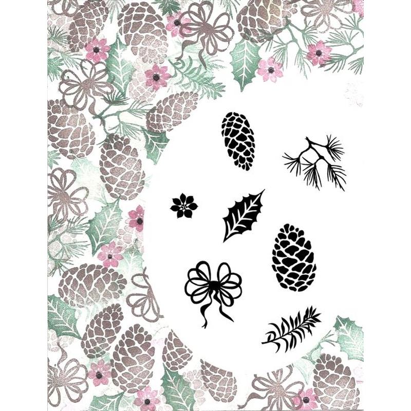 Festive Fir-cones Majestix Stamp Set. Simple quick and effective clear peg stamps offering complete versatility and ease of stamping due to their elegant ergonomic design. They are designed to be mounted on Majestix Clear pegs and come in sets of co-ordinated images and can be used to build up beautiful multicoloured backgrounds, borders, garlands, wreaths etc. enabling the crafter to co-ordinate everything they do from hand made greeting cards, wedding stationary, Scrapbook pages, card inserts, envelopes, or gift tags. CDMAFE-04 MPN MAFE-04