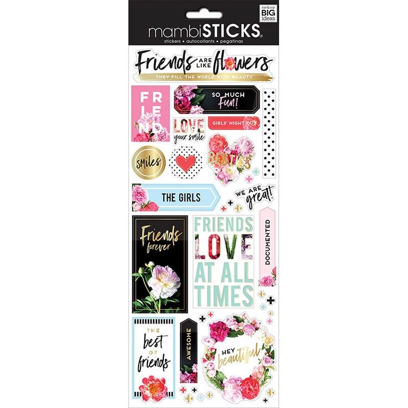 Friends are Like Flowers Record all your special friendship memories with the MAMBI Sticks Friends are Like Flowers with Foil Accents Cardstock Stickers from Me and My Big Ideas. There is one 5" x 12" sheet of cardstock stickers, some with foil accents, included in the package. The set features images of flowers, hearts and expressions. SPX-330 MMBSPX-330 MMBSPX-330 MPN SPX-330