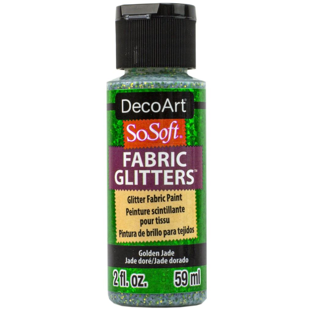 Golden Jade SOSOFT FABRIC PAINT DecoArt SoSoft Fabric Paint is the softest fabric acrylic on the market. It is permanent and requires no heat setting. Once dry, it is extremely soft and flexible to the touch. It adheres to all textiles and will not crack, peel, or harden even after repeated use and washings. Versatile color palette for use in home decor and fashion Opaque coverage Water-based Made in the USA CLDADSSFG11-2OZ MPN DSSFG11-30