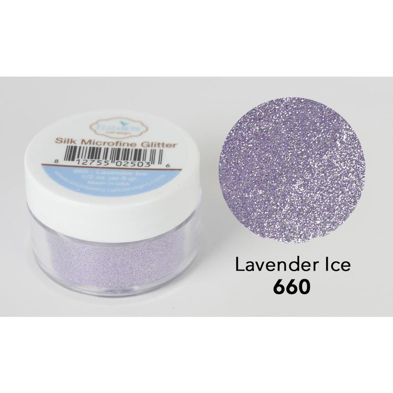 Lavender Ice Microfine Glitter. Silk Microfine Glitter is a high quality glitter with an amazing shine. Perfect for adding a sparkle to your card making, scrapbooking and other craft projects. When combined with Double Sided Adhesive tape by Elizabeth Craft Designs, Inc. and the "Polished Silk" Technique the results are spectacular. comes in a 1/2 oz. jar. 660 ECD660 ECD660 MPN 660