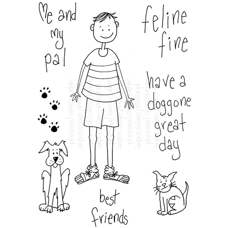 Me and my pal - Doo Lally Pip. Permanently clear stamps produced in a thicker photopolymer sheet (3.2mm). Easy to align for precision stamping. Sticky back for direct mounting onto acrylic blocks. Can be used stored and reapplied many times. size A6. Designed by Lindsay Mason PICSA6431 PICSA6431 MPN