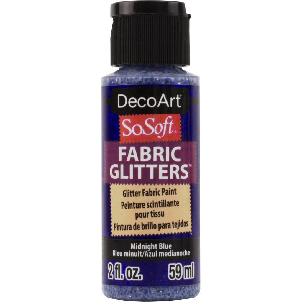 Midnight Blue SOSOFT FABRIC PAINT DecoArt SoSoft Fabric Paint is the softest fabric acrylic on the market. It is permanent and requires no heat setting. Once dry, it is extremely soft and flexible to the touch. It adheres to all textiles and will not crack, peel, or harden even after repeated use and washings. Versatile color palette for use in home decor and fashion Opaque coverage Water-based Made in the USA CLDADSSFG14-2OZ MPN DSSFG14-30