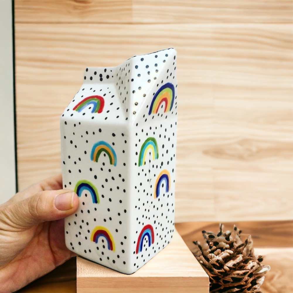 Creative Design: Shaped like a milk carton for a fun, modern twist.