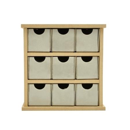 The beyond-the-page Mini Drawers can be decorated with any of Kaisercrafts papers, paints or embellishments and make excellent storage for small items. The Mini Drawers feature nine chipboard drawers each of which are 40mm wide and 40mm high. Once assembled the frame is 15cm high and 14.6cm wide. SB2139 KASB2139 KASB2139 MPN SB2139