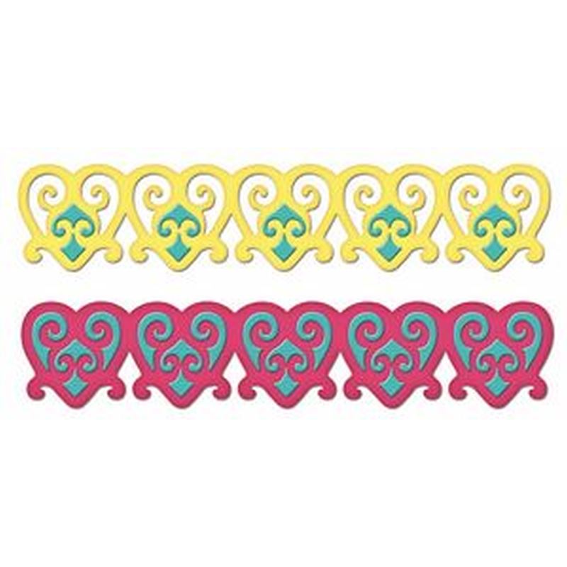 Spellbinders SBS4-215 - Renaissaince Hearts Pendants Borderabilities. The Renaissance was a period of rebirth and renewal. In a collaboration of multi-form hearts, we hope it will inspire you in a whole new way. Designed to coordinate with S4-206 Renaissance Hearts Pendants. Sized for an A2 card, this is a set of two Borderabilities die templates. One is a border that cuts one edge and embosses the other, and can be used to make continuous cuts and decorative edges. The second Borderabilities die template has a continuous cut line perfect for making coordinating accent pieces. Spellbinders Borderabilities cut, emboss and stencil with a single die template. Approximate Die Template Sizes: Border: 1 x 5? Accent: 1 x 5? S4-215 S4-215 SBS4-215 SBS4-215 MPN S4-215