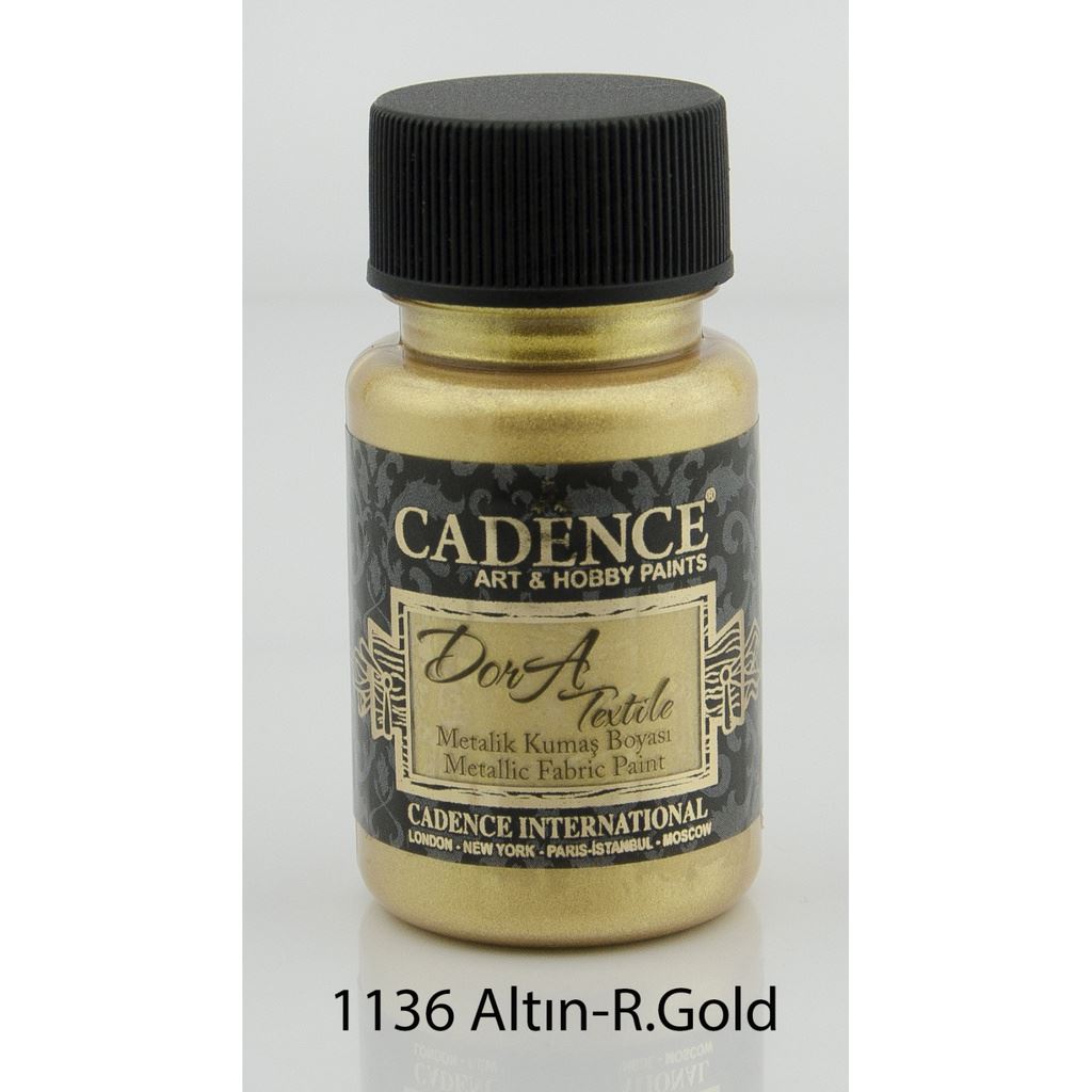 Rose Gold 50 ml Dora Textile Metallic Fabric Paint Cadence Dora Textile Metallic Paint is a water-based metallic fabric paint with a unique shine with a dazzling glitter. It can be used on all types of fabrics and fixes to a permanent finish. Fabrics must be pre-washed and dry. CA734632