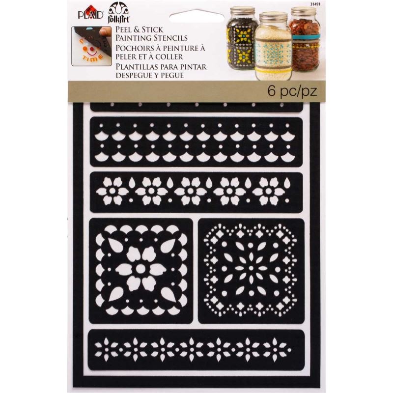 Painting on glass is easier than ever with FolkArt Peel & Stick Stencils and FolkArt Enamel Paint. Perfect for adding a personalized, painterly touch to home accents and gifts. Low-tack adhesive adheres firmly to project surfaces, preventing paint run-unders. Flexible material allows stenciling on curved surfaces. Sticks to any non-porous surface; repositionable up to 20 times. 6" x 8.25" 31491 PE31491 PE31491 MPN 31491