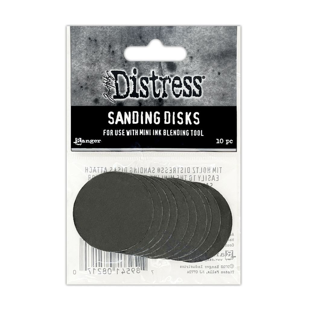Tim Holtz Distress® Sanding Disks are for sanding and distressing your craft projects. For use with Mini Ink Blending Tool. The medium-grit sandpaper provides the ideal friction to work on cardstock, chipboard, wood, and more. Each disk measures 1" (2.54 cm) in diameter. Pack contains 10 pieces