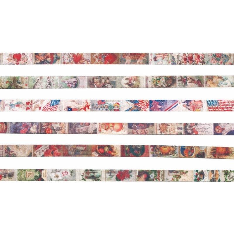 Capture the spirit of the season with the Tim Holtz Idea-Ology Trimmings: Seasonal. Featuring vintage postcard-inspired imagery, this collection of seasonal trimmings adds the perfect touch to your craft projects all year round. From Valentineās Day to Christmas, and everything in betweenāEaster, Americana, and Halloweenāthese trims will enhance your scrapbooking, card making, and DIY creations. The pack includes 1 yard of each trim, with a width of 3/8".