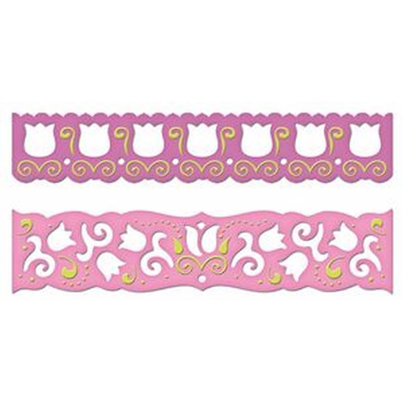 Spellbinders SBS4-211 - Tulips Pendants Borderabilities. A tulip is a symbol of abundance and indulgence, it is easily recognized and much loved. The beauty and simplicity of a tulip is conveyed to art with this elegant set of Borderabilities. Designed to coordinate with S4-209 Tulips Pendants. Sized for an A2 card, this is a set of two Borderabilities die templates. One is a border that cuts one edge and embosses the other, and can be used to make continuous cuts and decorative edges. The second Borderabilities die template has a continuous cut line perfect for making coordinating accent pieces. Spellbinders Borderabilities cut, emboss and stencil with a single die template. Approximate Die Template Sizes: Border: 7/8 x 5? Accent: 1 1/8 x 5? S4-211 S4-211 SBS4-211 SBS4-211 MPN S4-211