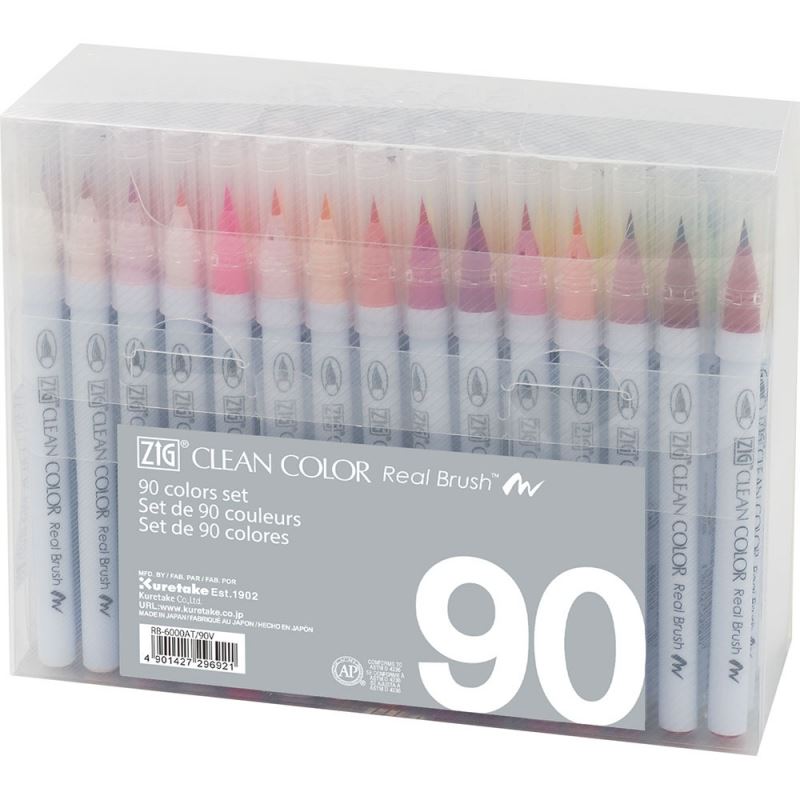ZIG Clean Colour Real Brush is a water-based dye pen with a single sided bristle brush tip. The brush tip is very flexible making it easy to go from thin to thick lines in one stroke. Great for illustrating, colouring, cartooning and sketching. INK TYPE: Water-based dye, odourless, Xylene Free (excluding 001, 002, 003, 004 which are water-based pigment). Package dimensions: 108x44x162mm, 4.25x1.73x6.38 inches. Made in Japan. Sold as a pack of x24 assorted colours. KURB-6000AT-90V MPN RB-6000AT/90V